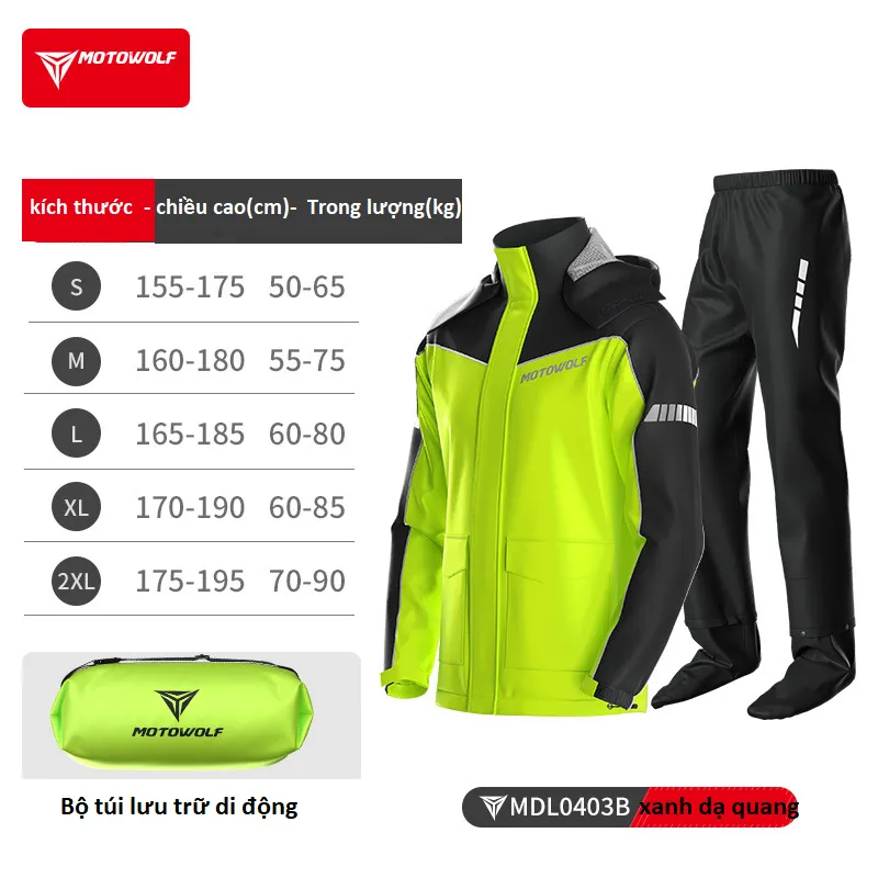 Áo Mưa Motowolf MDL0403B - Xanh Phản Quang