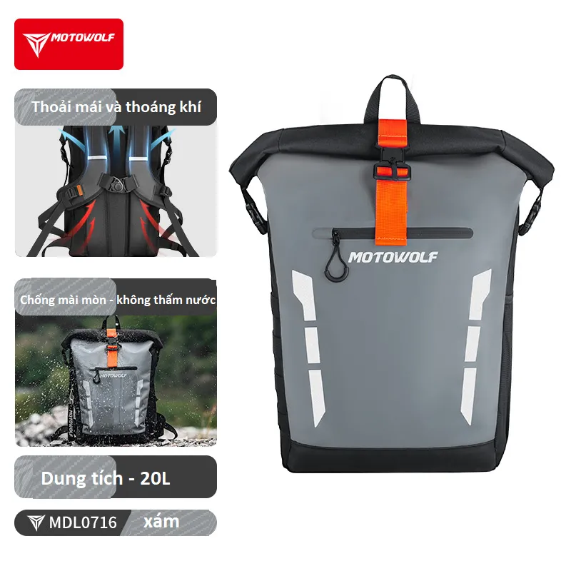 Ba lô Motowolf - Balo Chống Nước Đi Dulich, Đi Phượt. Chính hãng Motowolf, Mã MDL0716