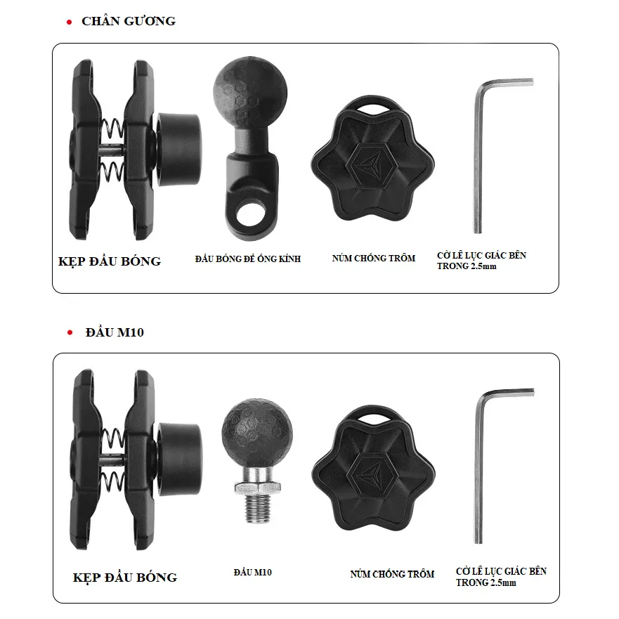 - Tùy chọn: Gắn chân kính, Gắn ghi đông