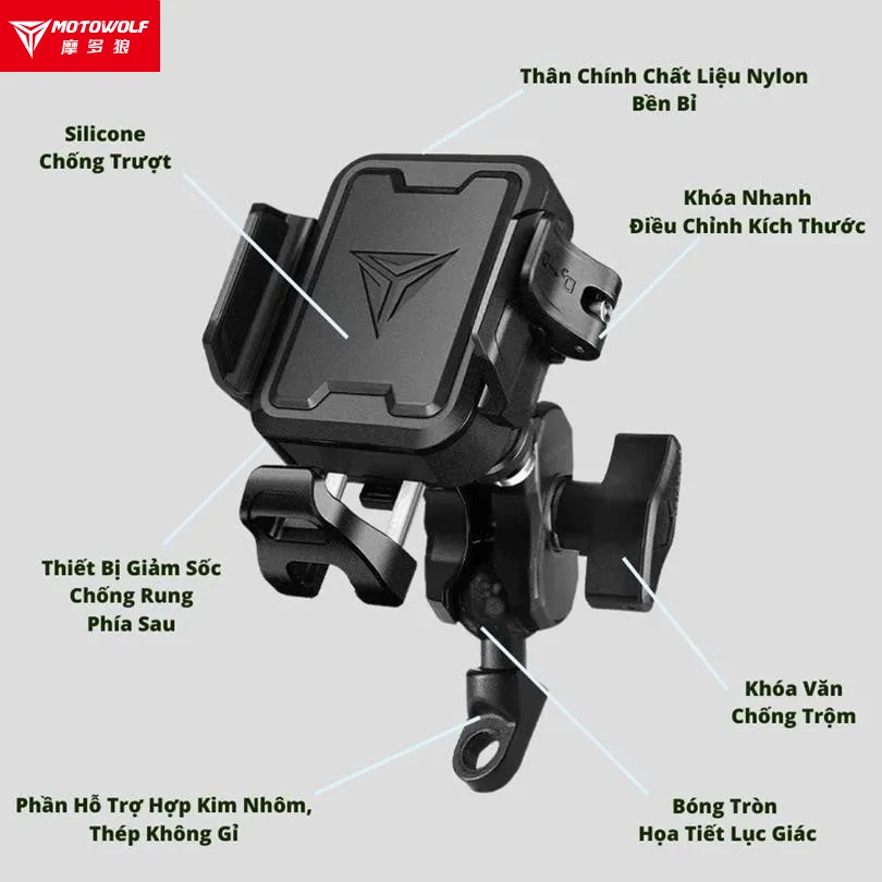 Giá Đỡ Điện Thoại Motowolf - MH1 Chống Rung Siêu Nhỏ Gọn, Có Thể Gắn Camera- Mái che Mẫu Mới 2025