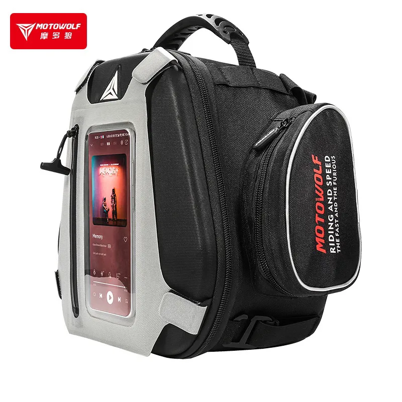 -Thiết kế gắn bình xăng đặc biệt cứng bề mặt có túi hiển thị cho điện thoại tương đối hoản chỉnh và chất lượng tương đương với các thương hiệu cùng phân khúc,rõ ràng MOTOWOLF được đánh giá cao về giá cũng như về chất lượng