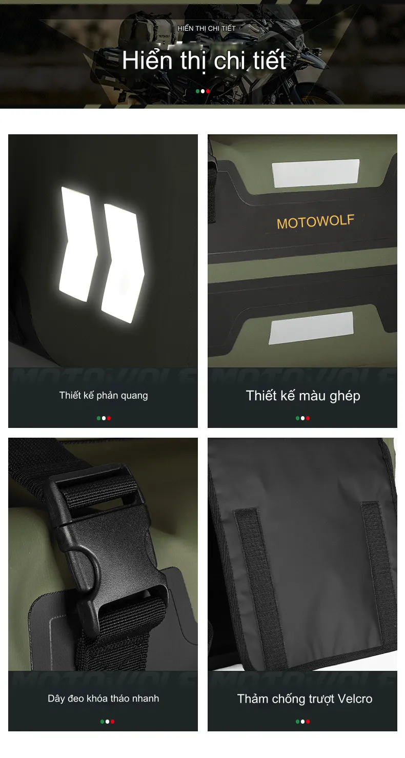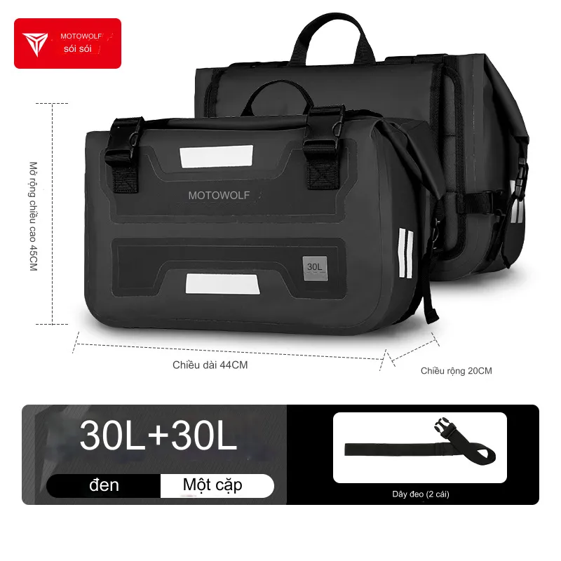 Túi Treo Hong Xe chống nước cao cấp phản quang- đi phượt, du lịch 2 túi 30L - MOTOWOLF chính hãng - MDL0720. phukiendulich.