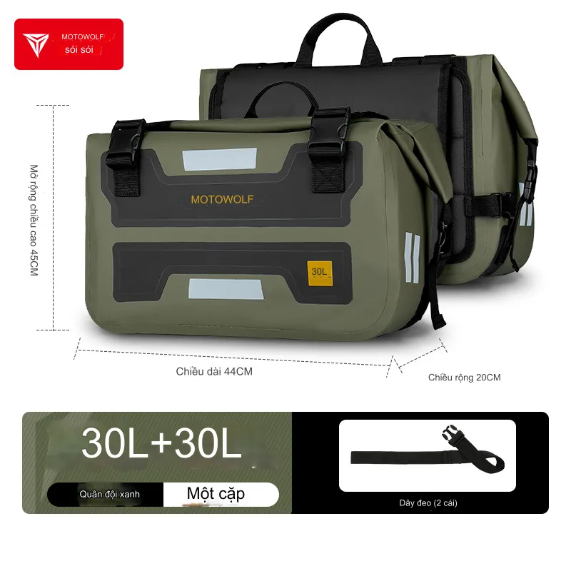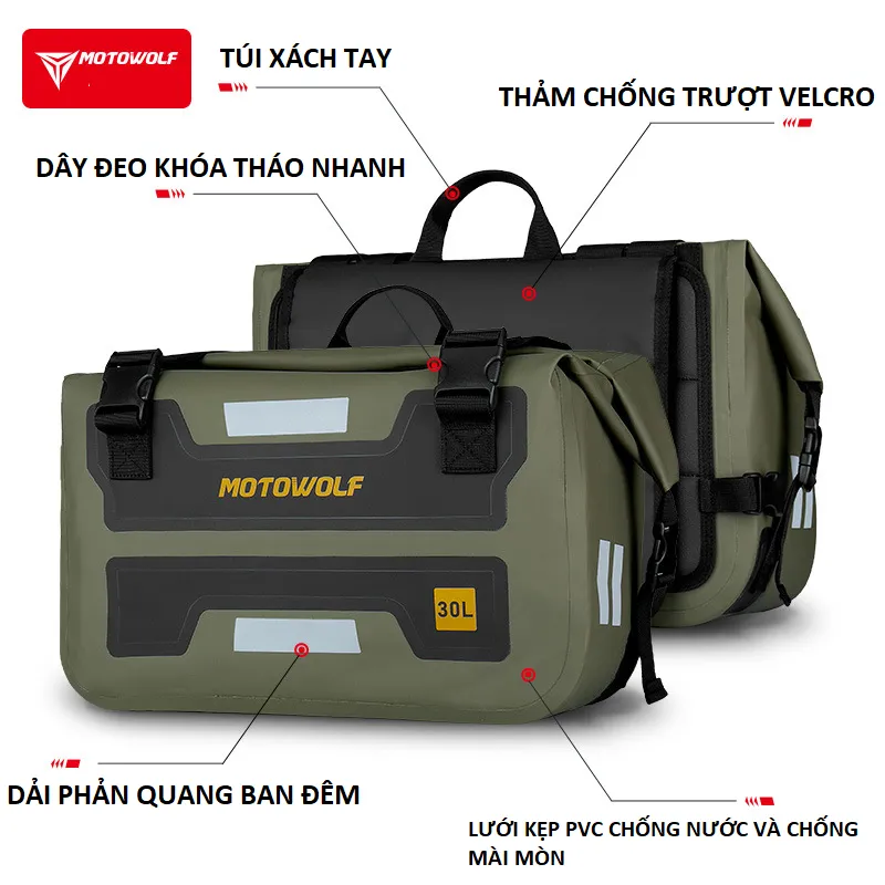 Túi Treo Hong Xe chống nước cao cấp phản quang- đi phượt, du lịch 2 túi 30L - MOTOWOLF chính hãng - MDL0720. phukiendulich.
