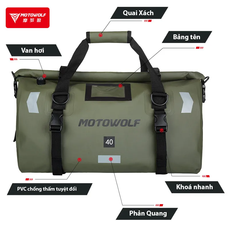 Túi Du Lịch MOTOWOLF MDL0717 Đa Năng, Phản Quang, Chống Nước 100% siêu xịn sò